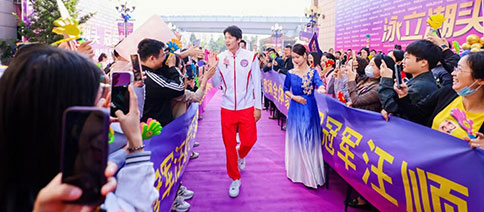 2023 “泳立潮頭 冠軍來琳——歐琳金秋新品發布會”舉行,游泳世界冠軍、歐琳品牌代言人汪順出席