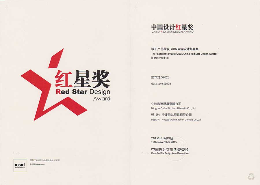 產品的創(chuàng)新力是一個企業(yè)的生命,OULIN歐琳曾連續(xù)5年榮膺全球工業(yè)設計最高獎“紅點獎”,而在剛剛揭曉不久的“2015中國設計紅星獎”中,OULIN歐琳廚電兩款產品CXW-200-IF6“主動免洗”吸油煙機、S902B“四翼速火”燃氣灶分別榮獲“紅星獎”。 今年共有來自18個國家1566家企業(yè)的6025件產品參評,最終僅有包括高鐵、大型機械、智能機器人、3D打印機、無人機等200余件產品獲此殊榮。