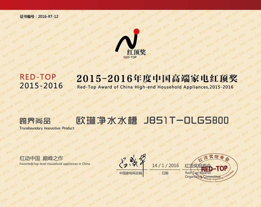 一個(gè)舞臺(tái),一場(chǎng)盛典,用年度的回眸,尋找產(chǎn)品的頂點(diǎn),這就是家電業(yè)的至高榮譽(yù)——紅頂獎(jiǎng)。今日下午,由紅頂獎(jiǎng)組委會(huì),中國(guó)家電網(wǎng)承辦的“紅動(dòng)中國(guó)、巔峰之作” 2015—2016中國(guó)高端家電趨勢(shì)發(fā)布暨紅頂獎(jiǎng)?lì)C獎(jiǎng)典禮在京舉行。OULIN歐琳“凈水水槽”憑借水槽電器化、智能化的創(chuàng)新,與三星、西門子家電等國(guó)際品牌一起獲此殊榮,這也是OULIN歐琳2016開門紅第一獎(jiǎng)。