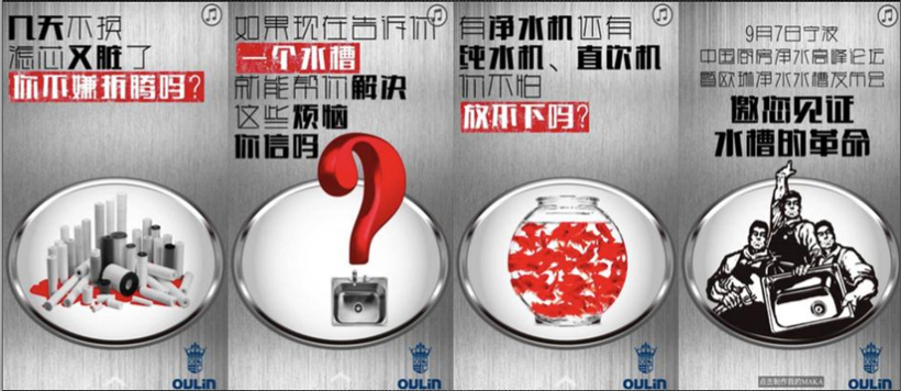 除了凈水水槽與MiniBox這兩款重量級、時尚年輕產品的發布上市,在年輕一代成為消費核心群體的今天,歐琳還采取了全新的社會化營銷手段——通過大量的病毒海報、視頻、H5等的創作和傳播,不僅提升了品牌活力、放大產品關注,擴大消費者的痛點,還有效增加了歐琳在年輕、時尚群體中的影響力。