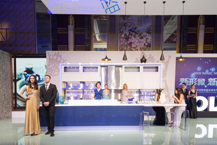在這次推出的新品中,還有一款以灰藍色為主調的歐琳中國藍Party社交廚房。2015年3月,歐琳推出Party廚房,將社交理念融入廚房場景中,除了具備廚房自身的功能特點外,還集合了年輕人娛樂、情感的訴求,倡導廣大“低頭族”回歸家庭,承載更多的情感交流的使命。