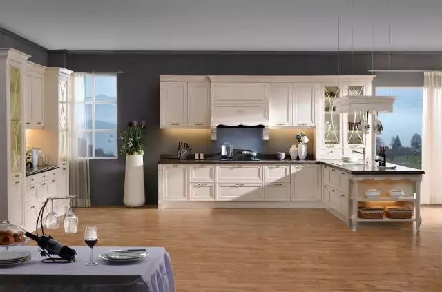 開放式的廚房可以與家里的整體裝修風格相統一,整體設計給人以安靜、成熟、優雅的生活氣息。