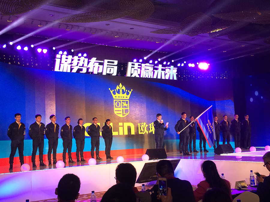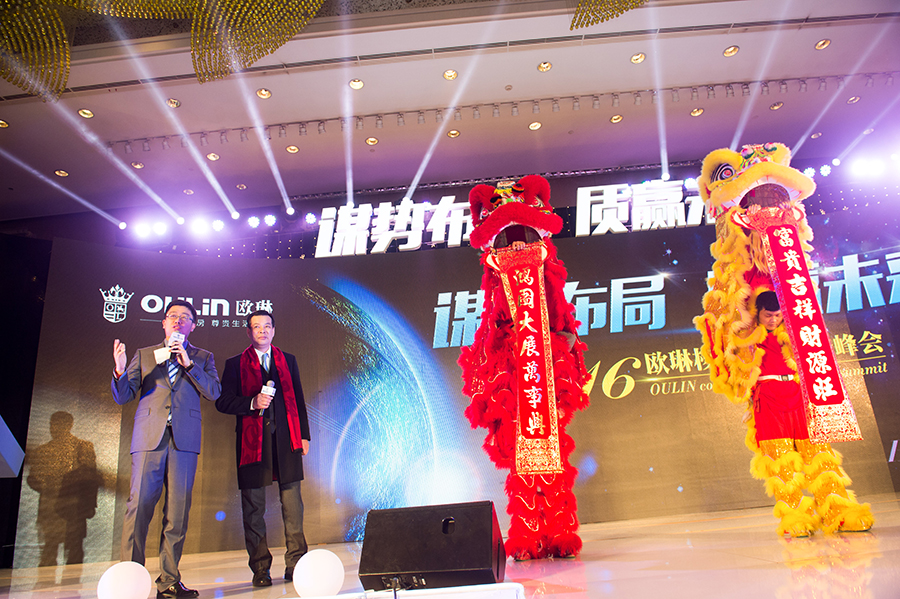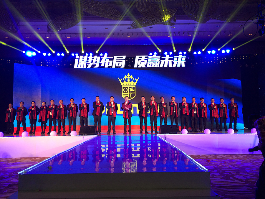 在會(huì)議最后的晚宴,不僅有賞心悅目的助興節(jié)目,OULIN歐琳?qǐng)F(tuán)隊(duì)還對(duì)在場(chǎng)的代理商朋友們鄭重宣誓,在未來的合作中,秉承互利共贏理念,做好代理商朋友們的后盾支持,攜手共鑄OULIN歐琳2016年的逆勢(shì)輝煌!