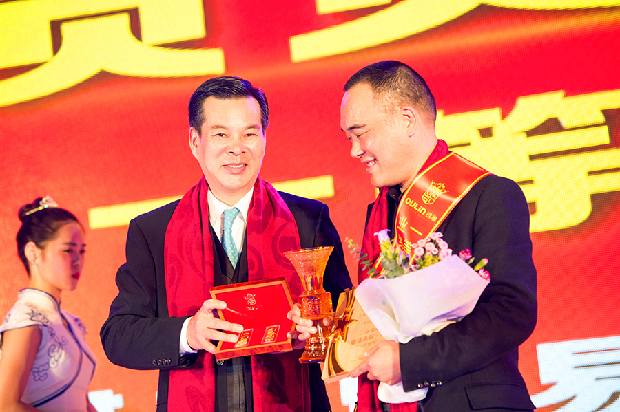 毋庸置疑,作為企業(yè)與消費(fèi)者的重要連接紐帶,代理商作為企業(yè)末梢銷售環(huán)節(jié),起到塑造企業(yè)終端形象、保障現(xiàn)金流順暢、協(xié)助企業(yè)拓網(wǎng)等重要作用,OULIN歐琳也深諳此道。在會(huì)議中特別安排了頒獎(jiǎng)環(huán)節(jié),對(duì)過去一年中有突出貢獻(xiàn)的代理商,頒發(fā)了包括“業(yè)績(jī)貢獻(xiàn)獎(jiǎng)”、“渠道開拓獎(jiǎng)”、“新品推廣獎(jiǎng)”、“優(yōu)秀終端獎(jiǎng)”等一系列獎(jiǎng)項(xiàng),并送上黃金紀(jì)念品。
