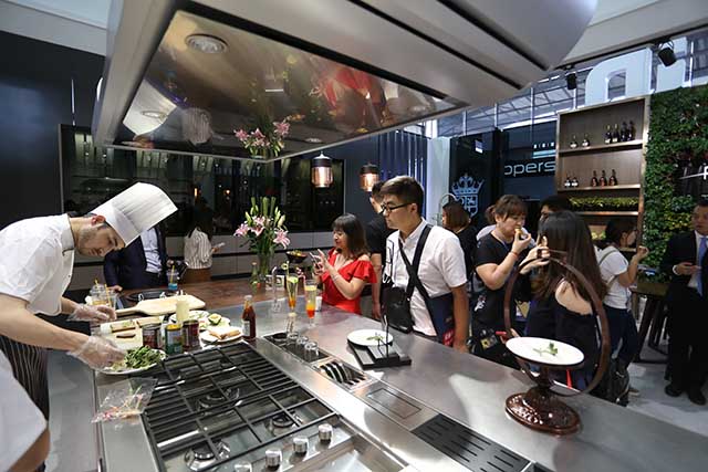在“Party食光”的展館里,不但有薩克斯現場的悠揚演奏,更有國外大廚現場烹飪助力,與消費者互動并教授烹調技巧;同時歐琳中國藍廚房里有專業的糕點大師現做蛋糕和餅干等美味甜點;展區內的香濃咖啡可以免費暢飲,讓現場客戶一邊暢享美食一邊徜徉精品之林,OULIN歐琳Party廚房的盛宴,盡顯優雅高貴!
