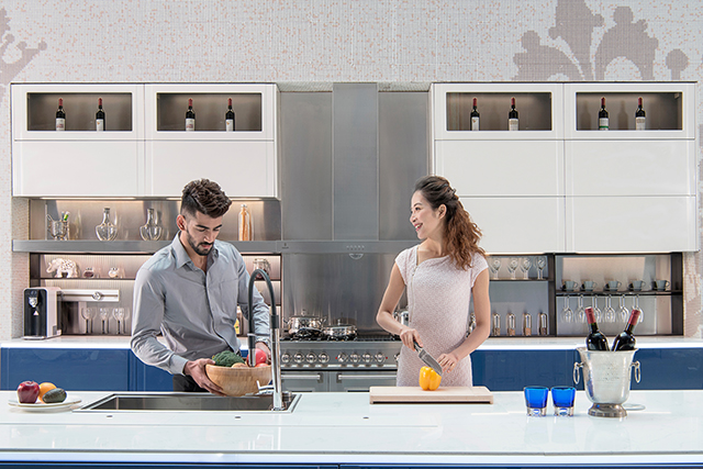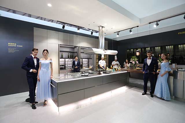 Party廚房將優雅、高尚、尊貴的社交文化深入人心,廚房里所有的烹飪用具都能滿足大容量、大排量和高效率的Party需求,讓人們將生活的中心從客廳逐漸移到廚房,將廚房當成休閑快樂的娛樂生活場所。今年,歐琳整體廚房依舊延續Party廚房理念,將產品升級化,在美學的基礎上繼續堅持精工匠心的品質,根據市場需求和潮流,創新改革,創造了屬于中國人的社交廚房。