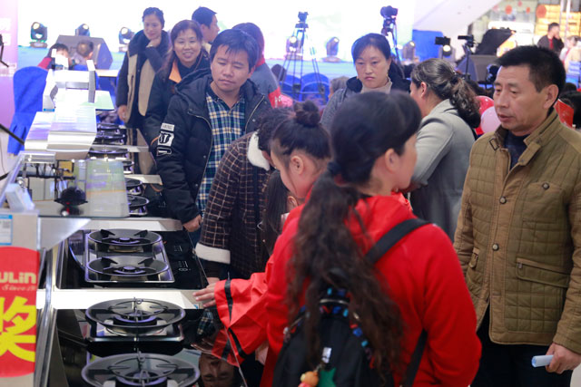 現場歐琳集成灶產品體驗區人頭攢動,時尚簡約的外觀設計、高精德系的工藝水準吸引大批消費者圍觀。
