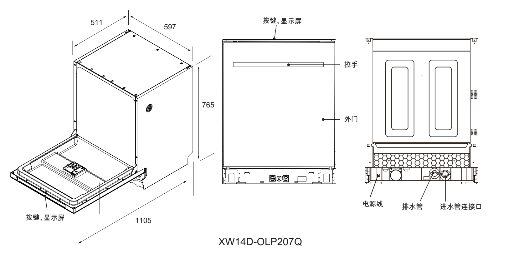| 外形尺寸 | 598×600×795(mm) | ||