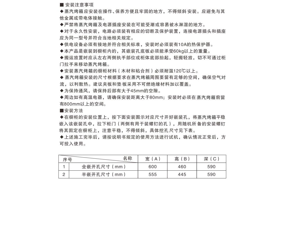 | 產品尺寸 | 寬595X高455X深545(mm) | 開孔尺寸 | 寬555X高445X深590(mm)半嵌 寬600X高460X深590(mm)全嵌 |