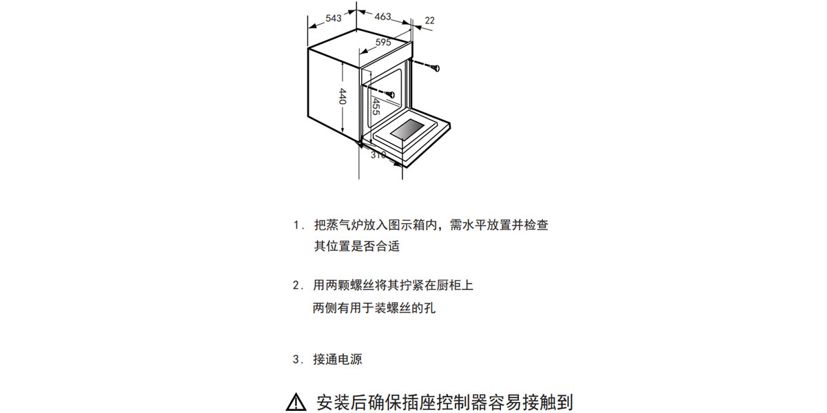 | 產品尺寸 | 寬595X高455X深485(mm) | 開孔尺寸 | 寬560X高455X深550(mm) |